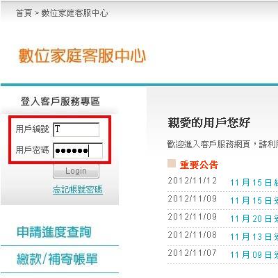 《步驟二》 輸入用戶編號與用戶密碼後,點選『Login』。