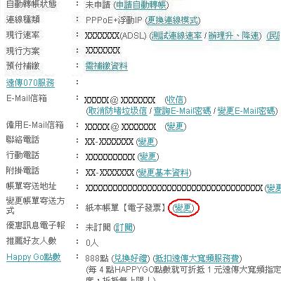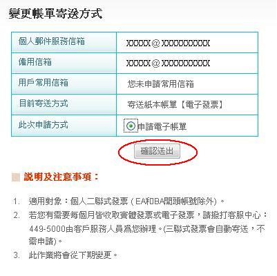 《步驟三》 點選『 變更帳單寄送方式 』,該選項內的變更。
